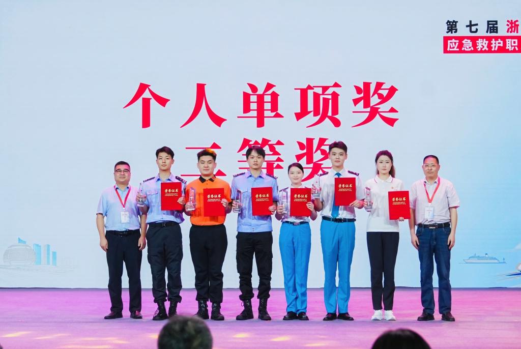 台州代表队王静宜、省交通集团代表队李政凭借扎实的理论功底和精湛的实操技能分获心肺复苏组、肠管外溢组第一名,经省总工会核准后将被授予“浙江金蓝领”称号。