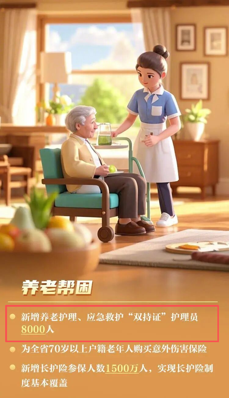 “新增AED对应培训应急救护人员”“新增养老护理、应急救护‘双持证’护理员8000人”入选2025年浙江十方面民生实事