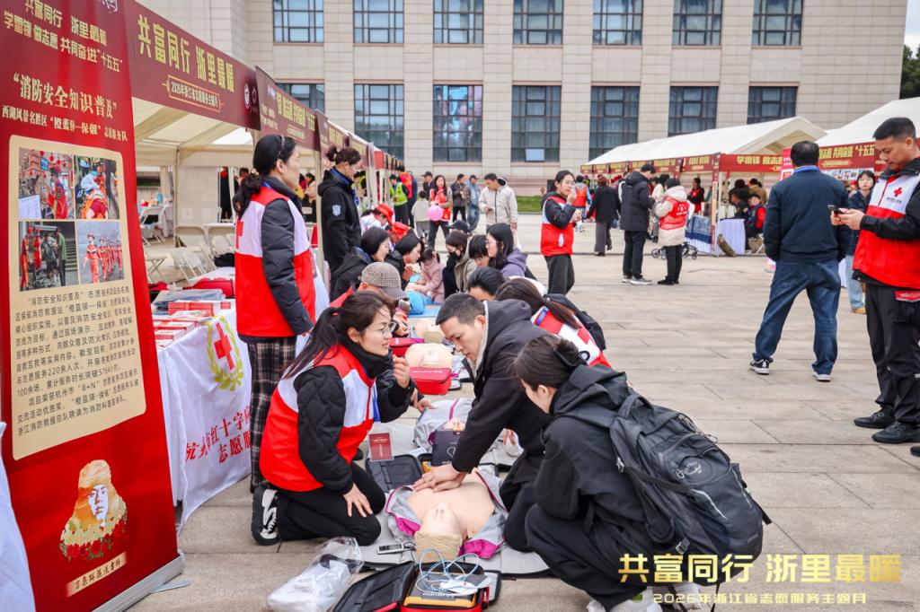 杭州市红十字应急救护师志愿服务队、杭州市临平区海豚应急救援队以及“急救‘临’距离·救在身边”特色项目等亮相主会场的志愿服务集市。