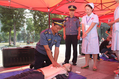 在现场,湖州市红十字会围绕今年急救日主题,精心组织了一系列形式多样的宣传和现场演练活动,既有医疗急救队伍的现场演练、急救知识图片展览,专家现场义诊与咨询服务等活动,也有现场群众参与和体验急救培训的内容。(潘熠)