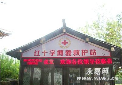 7月26日上午,在一个简短仪式后,座落在楠溪江狮子岩景区的红十字博爱救护站正式启用。救护站是一个装修古朴、标识醒目、融入景色、独特别致的一层方正小屋,面积十几平米,分办公区与救护区两个部分,并根据景区实际情况配备了必要的救护器材。救护站投入使用后,除了成为救护平台外,还将成为传播精神、宣传业务、自愿服务等红十字工作平台。