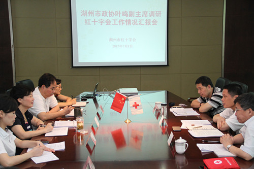 7月1日,湖州市政协副主席、市红十字会名誉副会长叶鸣到市红十字会调研,亲切看望机关工作人员,并详细了解了全市红十字会工作开展情况。
