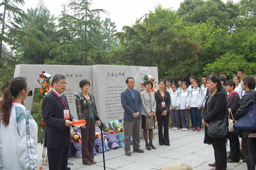 纪念碑落成仪式现场,作为学生代表,来自嘉兴学院医本123班的董佳佳表示:“是‘无语良师’教会我们这些未来的医生学会感恩、尊重和爱!医学的成就离不开这些无私奉献的‘无语良师’。”