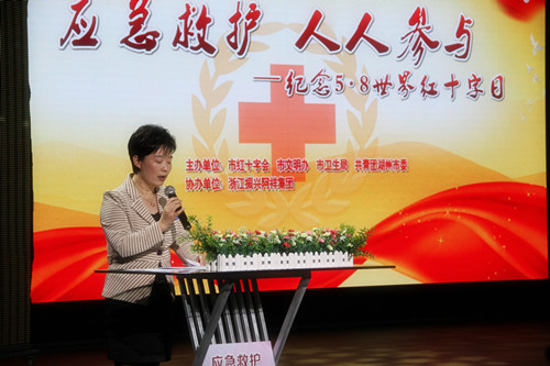 湖州市红十字会专职副会长吴康丽介绍全市应急救护培训工作