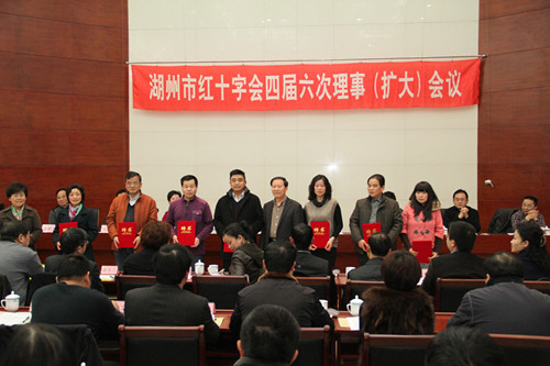 2月1日,市红十字会第四届理事会第六次(扩大)会议在湖州召开。会议总结了2012年全市红十字会工作,部署了2013年的重点工作,审议通过了市红十字会2012年度捐赠款物接受和使用情况报告,关于更换部分理事、常务理事和副会长有关情况的报告等。副市长、市红十字会会长沈建平出席会议并作重要讲话。市红十字会专职副会长吴康丽作年度工作报告,秘书长金新安作2012年度捐赠款物接受和使用情况报告。市民政局局长谢银根,市卫生局局长施会龙等领导参加会议。副会长、市政府副秘书长徐晏平主持会议。