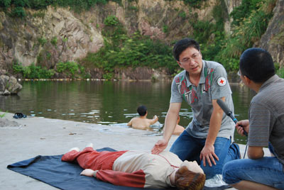温岭市健康教育所、温岭市红十字会针对夏季溺水死亡事件,在电视台《生命与健康》栏目专门录制一期防溺水应急救护节目。温岭市红十字会选定救护师、温岭市红十字医院副院长李云龙参加节目拍摄的演示和指导,到曾经发生过溺水事件的一郊区池塘和市体育馆游泳池现场进行模拟演示、拍摄。找到正在池塘游泳的群众演员,演示游泳时发生溺水,分解溺水后下水救上岸、控水、心肺复苏等环节,拍摄效果比较理想。节目播出后受到群众特别是家有中小学生家长的好评。(施文冶)