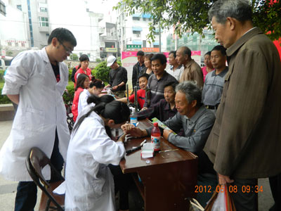 5月8日上午,由县红十字会主办,北岙镇社区卫生服务中心协办,在县府小广场开展了义诊活动,分管副县长吴志安亲临了活动现场。在活动现场,医护人员为群众测量血压、血型及测定血糖,并耐心、详细了地解答健康小知识,热心的志愿者们还向行人分发无偿献血、造血干细胞捐献、及健康小知识等5种宣传资料,共发放约1000余份。活动吸引了不少过往行人前来参与,前往接受义诊的共有200余人,一位在现场活动的群众讲道:“这样的活动效果挺好的,既关心了老百姓的健康,也 很好地宣传了红十字会。”