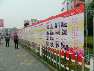为营造更好的宣传氛围,县红十字会在连城大道上展出了长18米的大展板,介绍了红十字的起源、历史沿革、工作职责,以及县红十字会的成立简介,让群众了解红十字的文化。