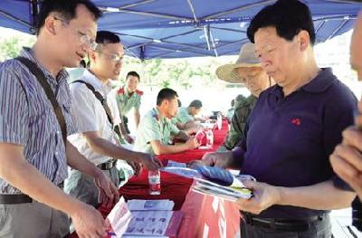 (市红十字会工作人员发放宣传资料,傅俊摄影)