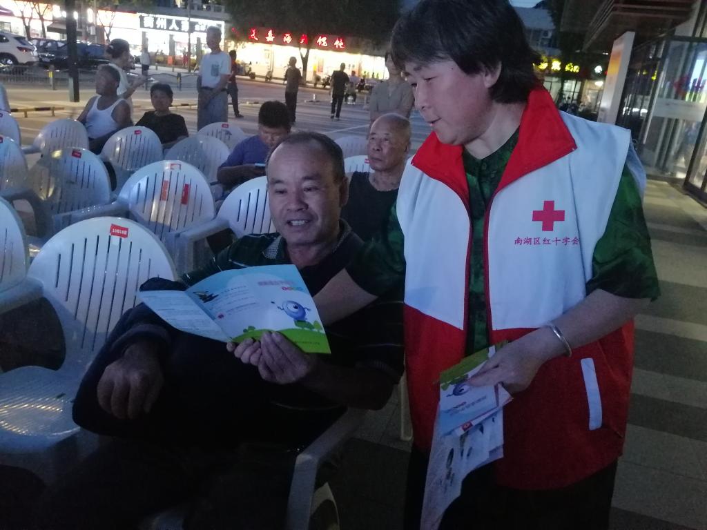 在南湖街道农翔社区,红十字志愿者向居民宣传救护常识及“三献”知识,旨在提升公众对“三献”的认知与认同,破除认知误区,鼓动更多健康公民自愿参与。