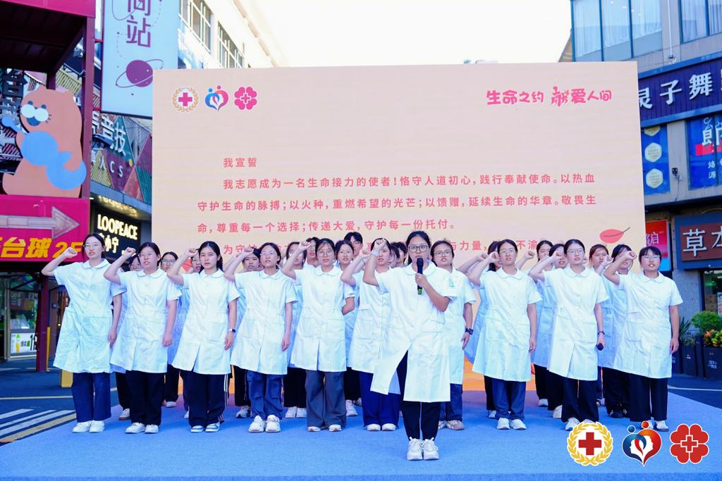 活动当天下午,由医学生和医护工作者组成的志愿者队伍庄严宣誓:“我志愿成为一名红十字‘三献’工作志愿者……”台州学院艺术团表演的诗朗诵《生命的礼物》,用艺术语言诠释着生命的价值与奉献的意义。