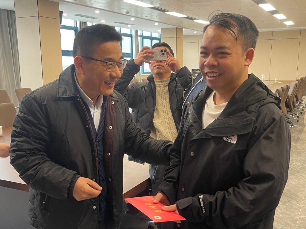 1月29日下午,台州市红十字会党组书记、常务副会长应正南,黄岩区副区长郭建同一行先后前往台州市第一人民医院、澄江街道等地,与造血干细胞捐献者们进行亲切交谈,详细询问他们捐献后的身体恢复情况及日常工作和生活状态,叮嘱其保重身体,有任何需求可随时与红十字会沟通,并对他们无私奉献的大爱之举致以崇高的敬意。