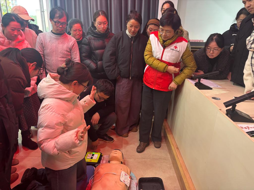 活动现场,红十字应急救护师通过PPT演示与现场演示,详细讲解了心肺复苏、自动体外除颤器(AED)使用、气道异物梗阻处置、创伤救护等实用急救技能,强调了应急救护“黄金四分钟”的重要性,帮助学员在突发事件中能够迅速、准确地实施急救,提升自救互救能力。学员们认真聆听理论讲解,仔细观摩操作示范,并在练习中严谨把握每个步骤,从手法力度到操作节奏,力求标准到位。