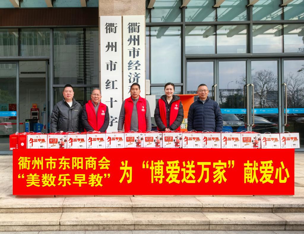 近日,衢州市东阳商会会员企业“美数乐早教”公司主动对接衢州市红十字会,捐赠一批牛奶等生活物资,全力支持衢州市红十字会开展的“红十字博爱送万家”活动,用实际行动为困难群众和弱势群体送去关怀与暖意,彰显了民营企业家的社会责任与担当。