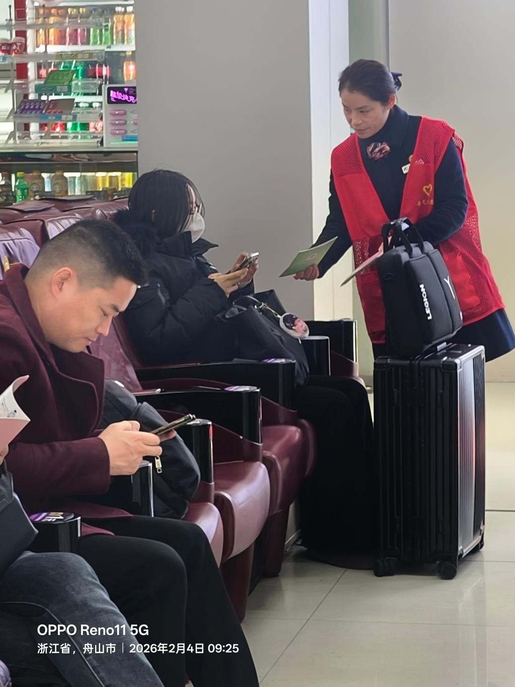 2月4日上午,舟山市红十字会在新城公交客运总站组织开展2026年交通伴行春运特别宣教活动。以实用的安全知识和急救技能为旅客平安出行护航,也为新的一年播撒下平安与希望的种子。