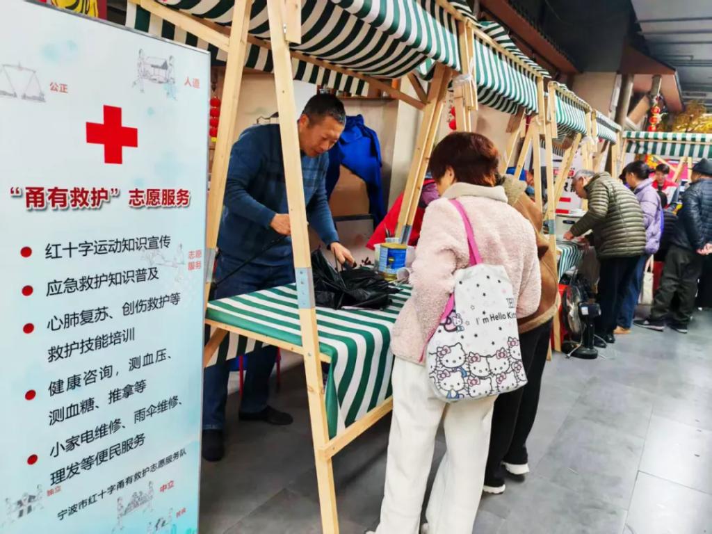 宁波市红十字“甬有救护”志愿服务队走进海曙区新高社区,开展学雷锋便民志愿服务活动。活动现场,志愿者们为居民提供急救知识普及、血压血糖测量、健康咨询,以及理发、雨伞和小家电维修等便民服务,氛围温馨融洽。