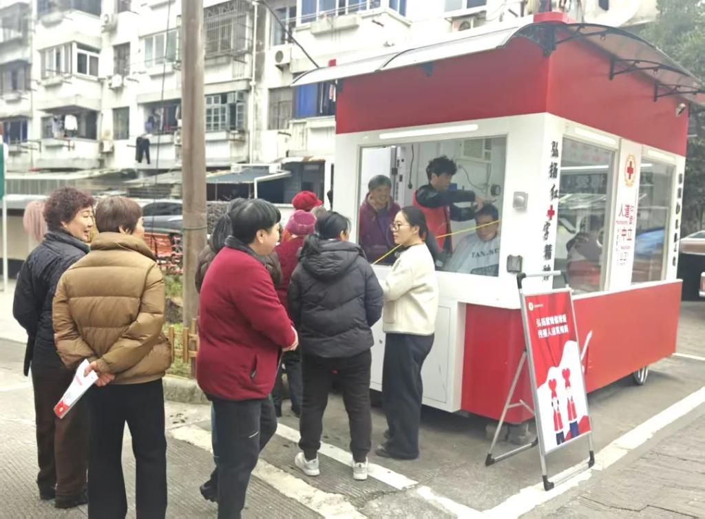 江北区红十字会与绿梅社区携手打造的红十字志愿服务站正式启用,首场“红路践行 十字连心”学雷锋志愿服务活动同步开展。现场设有理发、缝补、磨剪刀、量血压、眼科义诊、急救技能演示等多项服务,吸引了众多群众参与。