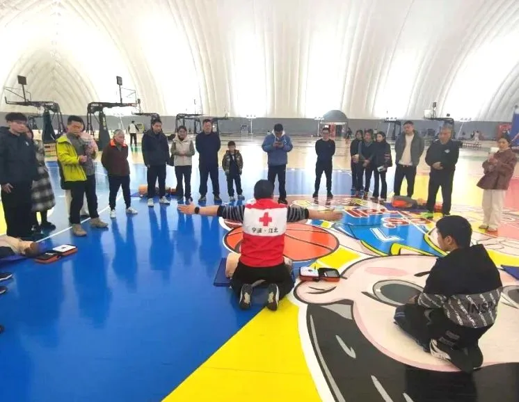 宁波江北全域(红十字)应急救援中心在云甬篮球公园,为宁波市新乐惠篮球俱乐部开展“甬有救护,救在身边”应急救护培训,27名参训人员通过考核,获得CPR+AED证书。