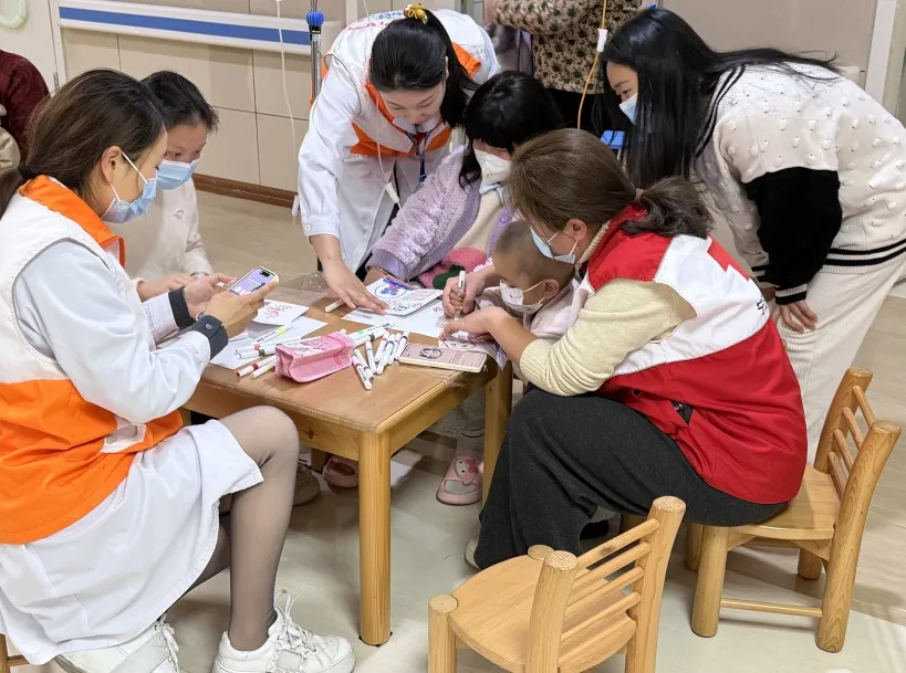 宁波大学附属妇女儿童医院红十字会组织开展“弘扬雷锋精神,关爱特殊群体”主题活动。活动严格遵循病房管理规范,志愿者经培训后,协助患儿制作心愿贺卡、用画笔描绘心中的母亲,并引导患儿为母亲挑选丝巾、表达爱意。医护人员同步提供健康咨询。针对无法下床的患儿,“流动雷锋小分队”将材料送至床旁,确保温暖传递不落一人。