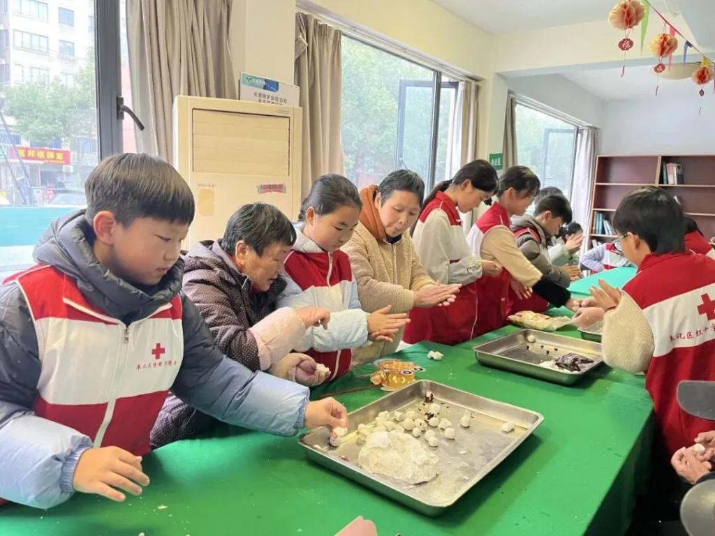 奉化区红十字青少年志愿服务队走进奉化丰康颐养院,开展“学雷锋·暖元宵,青春伴夕阳”主题活动。志愿者与老人共同制作花灯、包汤圆,现场一片欢声笑语,其乐融融。