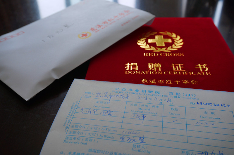 慈溪市红十字会收到首笔尼泊尔地震捐款