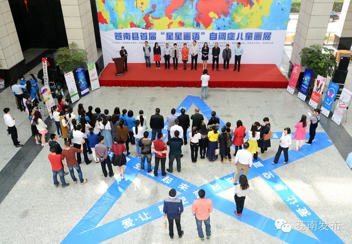 开幕仪式上,县关爱自闭症志愿者服务队成立,他们将关心关爱自闭症儿童,为他们做好康复训练工作,同时呼吁社会各界人士支持自闭症公益事业。在县文化馆三号厅,自闭症孩子绘制的图画、蜡烛、雨伞、杯子、明信片等向人诉说着“星星物语”, 为“星星的孩子“插上梦想的翅膀,使人感受到他们无比精彩的内心世界。