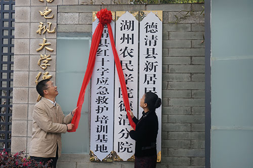 4月10日上午,德清县红十字会联合县教育局在电大德清学院举行红十字应急救护培训基地揭牌仪式,副县长、县红十字会会长李红,县红十字会常务副会长孙占民,副会长刘根良参加揭牌仪式。