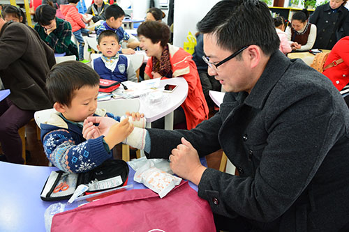 市红十字会为每个参加活动的家庭免费发放了一只内含人工呼吸膜、医用绷带、酒精棉球、创可贴、小剪刀等急救物品的急救包,以及书籍《现场急救问与答》。吴老师还现场演示了环形包扎等不同包扎方法,台下的小朋友们也拉着家长的手臂现场操练起来。小学一年级男生张俊,在妈妈的右臂上轻轻缠绕一圈圈绷带,完成了环形包扎,这是他们第一次参加红十字应急救护培训,感觉收获很大。“平常我们就很注重对孩子进行日常生活知识的教育,今天这个讲座寓教于乐,孩子很感兴趣。学习一些应急救护知识,有利于孩子健康快乐的成长。”张妈妈说。半个小时后,“亲子”培训活动结束,不少家长随即询问,何时会再举行类似的培训,想要掌握更多的急救技能。