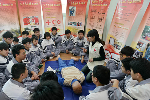 3月10日,湖州市红十字会工作人员来到湖州交通学校,对即将毕业实习的近百名学生开展了红十字初级救护员培训。现场讲解并演示了心肺复苏术和止血方法,以及突发意外的应急处置等内容。(陆伟)