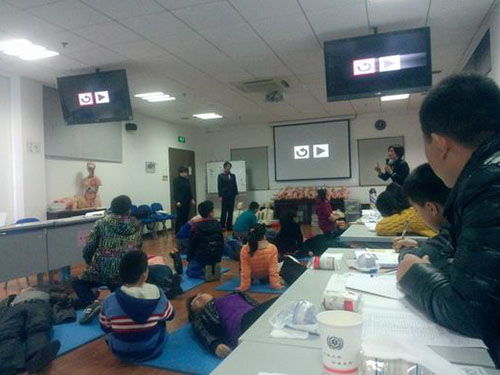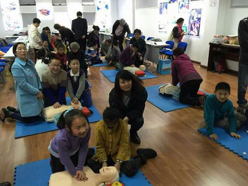 一天的课程安排很紧凑,时间在不知不觉中过去了,但学生们的兴致始终很高。他们用心听讲,专注练习,积极参与,相互间的团队配合有致,在活泼生动的学习中学到了实用、生动、有趣的急救知识。