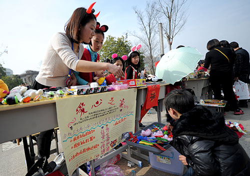 2月14日下午,“让爱心传递,为生命加油”大型爱心义卖募捐活动在余杭街道塔山公园文化广场举行,此次活动由余杭区红十字会、余杭街道红十字会和“小手大爱”志愿队家庭共同参与,目的是为仁和中学血液病少女杨书蕾筹款,共有100余个爱心家庭参与了本次义卖活动。除了主会场,还在久久超市、泽艺影城、禹航路口、南渠街设立四个流动募捐点。