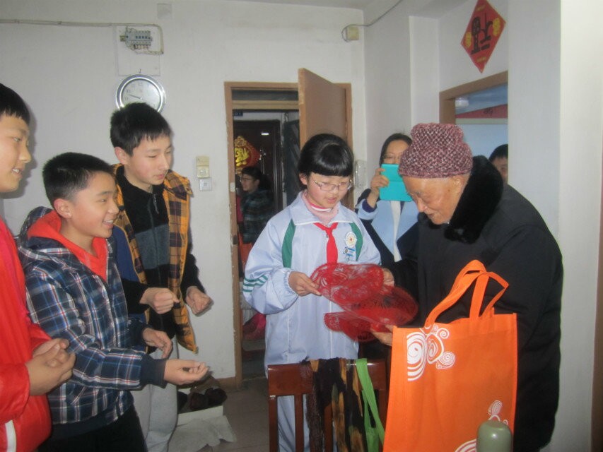 羊年春节临近,杭州市江干区采荷中学红十字志愿者服务队组织了一场特殊的志愿服务活动:送福送关爱。通过看望空巢老人,为他们送去窗花、福字,传递社会关爱好。
