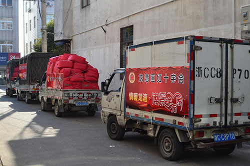 2月11日,温州市红十字会副会长潘松华、龙湾区人民政府副区长、红十字会会长汤筱疏带领红十字志愿者开展2015年度“情暖龙湾·博爱送万家”活动。