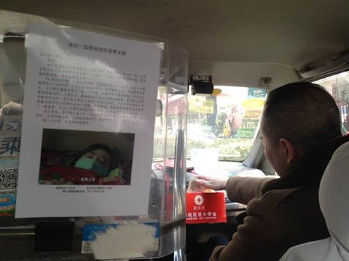 每天行驶在马路上的“的哥”们听闻消息后,一起商议,决定捐献一天的营业额,为帮助小书蕾尽一份绵薄之力。