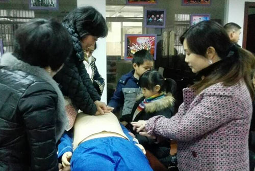 “医学上把发生伤病后的4分钟,称为急求救的‘黄金时间’。每耽误一分钟,死亡率就会直线上升。随着城市的不断扩大和交通的日趋拥堵,救护车难以短时间内就赶到意外现场,这往往使处在生命危及关头的伤病员痛失宝贵的抢救时间。危急时刻,如果有人能为突发心脏病的伤病员做现场心肺复苏,如果有人能在火灾现场懂得正确的逃生方法,如果有人能在交通事故现场帮助伤员止血包扎……无疑将为挽救生命抢得先机,从而大大降低伤病员的死亡率和致残率。”在授课中,培训讲师采用理论知识讲授与实际操作相结合的形式,通过幻灯片演示、现场模拟示范、真实案例解说等方式,生动有趣、通俗易懂地讲解了徒手心肺复苏术(CPR)操作、现场急救四项技术(外伤止血、伤口包扎、骨折固定、伤员搬运)等知识。