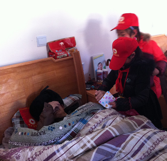 慰问组首先来到黄森林老人家中,这是一位孤寡老人,今年78岁,无固定收入,身患重疾并卧病在床。虽然病痛缠身,但是老人的脸上一直洋溢着笑容,据随行的越秀外国语学校的志愿者介绍,老人一直以来与人为善,乐于助人,当2013年他身体还健朗时,曾将毕生积蓄3万元捐献给慈善事业。在场的工作人员都被老人这种无私奉献的精神和积极乐观的心态所感染,送上新年红包的同时再三叮嘱他要保重好身体。