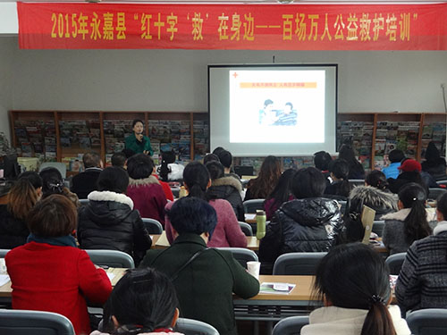为推广普及应急救护知识,提高居民应急救护意识和处置突发性事件能力。1月15日,永嘉县红十字会通过微信公众号、新浪微博等途径,公开发布培训信息,招募2015年第一期公益救护培训的学员。报名开始后,报名的群众络绎不绝,初定第一期80人的名额,在信息发布的第二天就已经爆满。