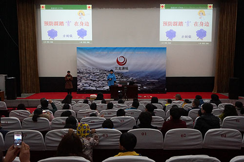 2月1日,慈溪市红十字会联合慈溪市委宣传部、市文广局、市图书馆在慈溪“三北讲坛”举办了一场《预防踩踏,“救”在身边》公益讲座。红十字救护培训师方剑俊为150名市民讲授了踩踏预防和救护的技能。