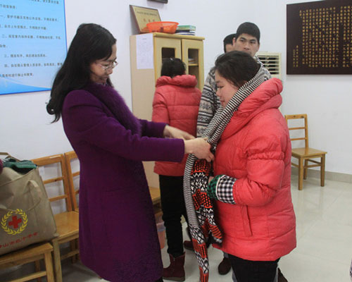 1月29日下午,舟山市红十字会党组书记、常务副会长陆意,副会长叶跃胜一行来到“红十字残疾人小康 阳光庇护中心”,为托养在那里的28位残疾人送去御寒的围巾、手套等慰问品。