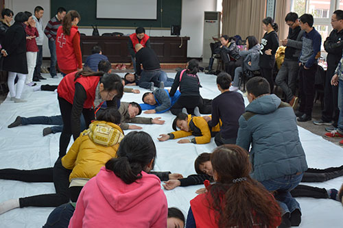 为了学好救护技能,掌握操作要领,学员们反复练习心肺复苏和止血、包扎、固定、搬运技能。在出勤、理论考试、试讲考试、CPR操作考试中表现出较高的纪律性和严谨性,与导师形成良性互动。特别是在综合演练项目中,学员们表现出很强的团队合作精神和较高的综合素质。同时,导师们细心指导小组长如何调动一个团队的凝聚力和号召力,激发团队的合作精神,带领团队有针对性地解决问题。