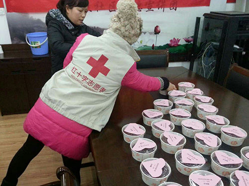 博爱真情,关爱“送上门”。社区红十字志愿者在社区集中发放点发完后500份后,马不停蹄的上门为行动不便的老人们送去了节日的问候。“朱大伯,这个是专门为您特制的木糖醇腊八粥,外面买不到的哦,不过一次只能吃一碗哦”志愿者小陈把精选为糖尿病患者朱大伯送上了“私人定制”的腊八粥。“没想到社区想得这么周到,这老底子的味道,真的要为你们点个赞!”朱大伯风趣的话消除了志愿者们的疲劳,社区志愿者小陈说:“能为大家带去温暖,很值得!”