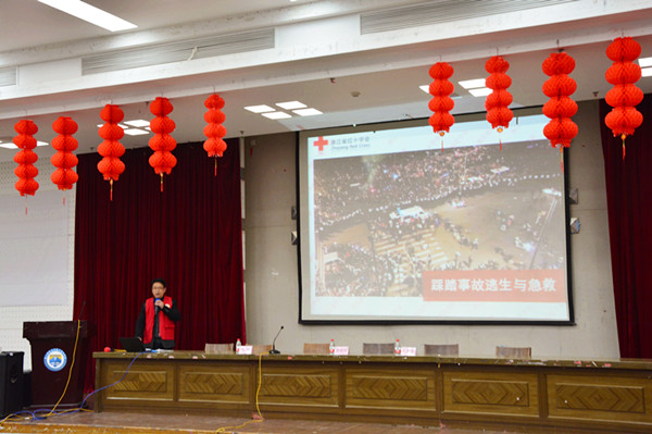 上海踩踏事件发生后,许多人为这些年轻的生命扼腕,也想着如果身边再次发生类似事情,能否为减轻伤痛做点什么。1月15日下午,以“踩踏事故敲响新年安全警钟”为主题的急救知识普及培训在浙江国际海运职业技术学院图书馆报告厅举行,港口管理专业的584名师生参加了培训,也拉开了舟山市“红十字‘救’在身边——百场万人公益救护培训”活动的帷幕。