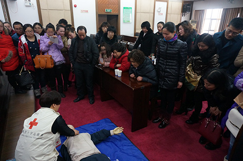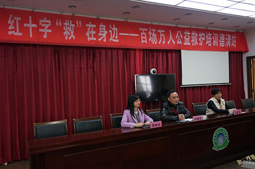 “红十字‘救’在身边——百场万人公益救护培训”是为了满足目前社会各界学习救护知识的热情日益高涨这一公众需求。作为政府为民办实事内容之一,德清县红十字会在2015年度将按既定计划完成10000余名社会各界人士的应急救护知识普及任务。