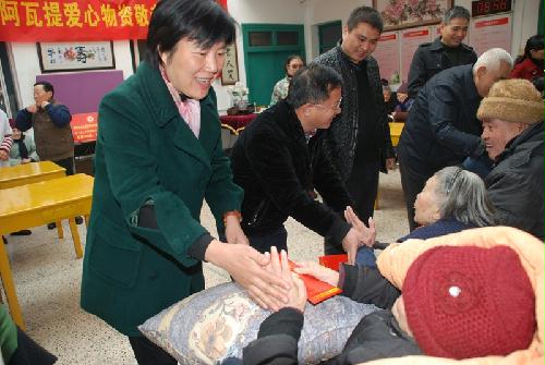 1月8日,阿瓦提爱心物资敬老慰问活动在绍兴市区红十字敬老志愿服务基地——夕阳红康乐园举行。来自敬老院的老人、红十字志愿者一起参加活动。绍兴市红十字会党组书记、执委会主任、专职副会长张友珍,绍兴市红十字会执委会副主任、专职副会长谢建友,新疆维吾尔族自治区阿克苏地区阿瓦提县农办主任黄敏先生和爱心企业家毛福军先生出席活动。