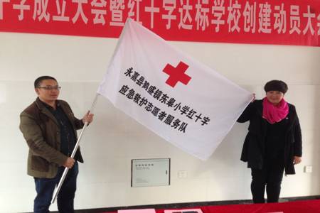 会上由会长潘统炎为东皋小学红十字会应急救援志愿者服务队授旗。大会最后全体志愿者及理事会成员进行宣誓仪式,正式成为红十字会组织的一员。