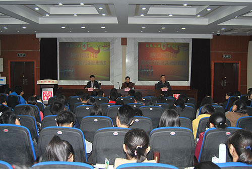 11月15日8时30分,在医学院学术报告厅举行了简短而隆重的开班仪式。该校红十字会副秘书长、医学院红十字会秘书长马国庆宣读了《关于举办2014年大学生救护员培训班的通知》、授课安排和学员须知。绍兴市红十字会秘书长、赈济救护处处长王佳代表市红十字会对救护员培训班顺利举行表示祝贺,她充分肯定我院在应急救护培训工作中所做的努力和取得的成绩,希望今后继续加强交流合作,互相促进,切实提高绍兴市所属高校大学生应急救护能力。该校红十字秘书长、校团委书记周旗江对培训工作提出了三点意见和希望:一是要统一思想,提高认识,充分认识此次培训的重要性和必要性;二是要端正态度,勤学苦练,在培训中提高应急救援能力和科学施救水平。三是要严格要求,严密组织,圆满完成培训任务。