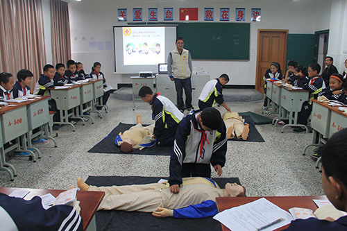 在现场会上,陶一二强调,急救知识普及培训对象为全市的教职工、学生。其中,救护师资培训在40个学时以上,红十字救护员培训在10个学时以上,各初中学校7年级必须统一开课,每学期至少授课2课时。应急救护知识培训以进课堂为主,并与学校主题活动、军训、社会实践活动等相结合;培训内容主要由创伤急救、心肺复苏、常见急症的处置三大板块,采取课堂集中讲授、示范演练与实际操作相结合的方式授课。她还向各学校布置了相关工作的开展。