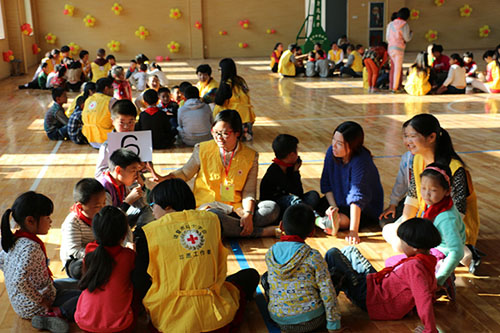 成立仪式结束后,开展了志愿者与留守儿童的见面会,在“抓乌龟”、“滚雪球”、“糖果运输队”等一系列活动,迅速拉近了志愿者与留守儿童的距离,甚至有小朋友在心愿墙上写下了“希望志愿者叔叔阿姨哥哥姐姐们能常来陪我们”这样的愿望。相信在红十字志愿者们的努力下,诸暨市留守儿童们会有一个健康成长的快乐童年!(俞玉颖)