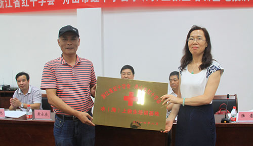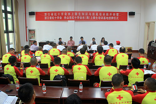 培训班得到了浙江海洋学院的大力支持,并于开班当天在该院挂牌成立浙江省红十字会 舟山市红十字会水(海)上救生培训基地。省红十字会党组成员、专职副会长高翔,