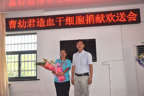 8月22日早上八点,鄞州区、古林镇两级红十字会和古林镇“红色力量”志愿者队伍在古林镇的“红色驿站”为曹幼君举行欢送会,欢送她赶赴杭州――浙江省中医院为对方患者捐献造血干细胞。区镇两级红十字会对曹幼君的大爱举动表示了高度赞扬,并向她赠送了鲜花。“红色力量”志愿者10余人到场欢送。在杭期间,曹幼君将经过必要的医学前期准备工作,将于本月26日正式向患者捐献造血干细胞。